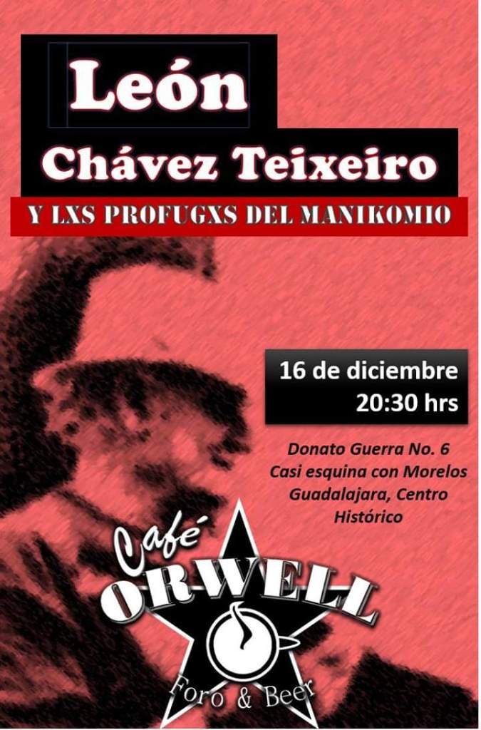 León Chávez Teixeiro y Lxs Profugxs del Manikomio, se estarán presentando el 16 de diciembre próximo en Café Orwell, el concierto promete ser una gran velada.