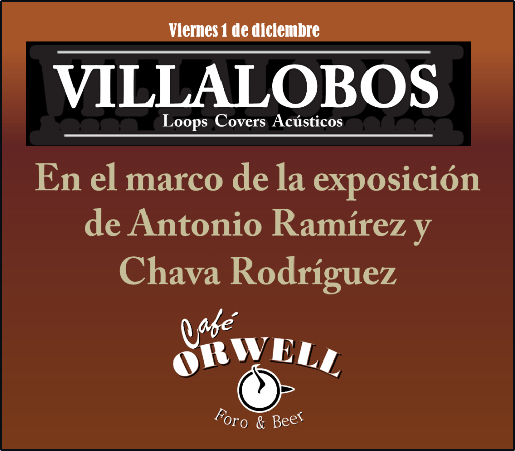 El viernes 1 de diciembre Villalobos estará musicalizando la inauguración de la exposición conjunta de Chava Rodríguez y Antonio Ramírez. 20 hrs los esperamos en Café Foro Orwell.