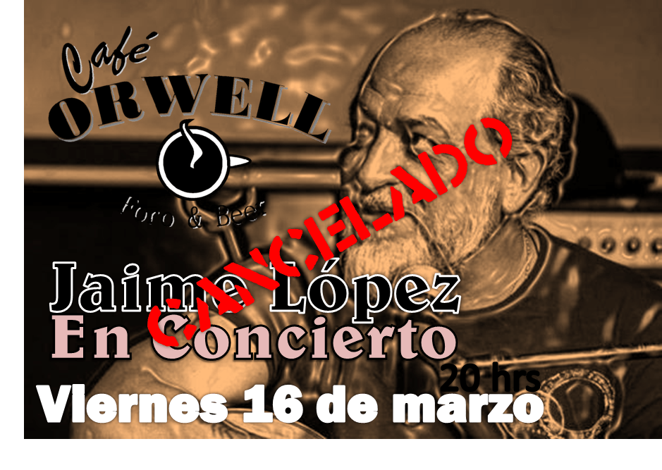 Lamentablemente el Cocierto de Jaime López que se llevaría acabo éste 16 de marzo en Café Orwell queda cancelado hasta nuevo aviso.